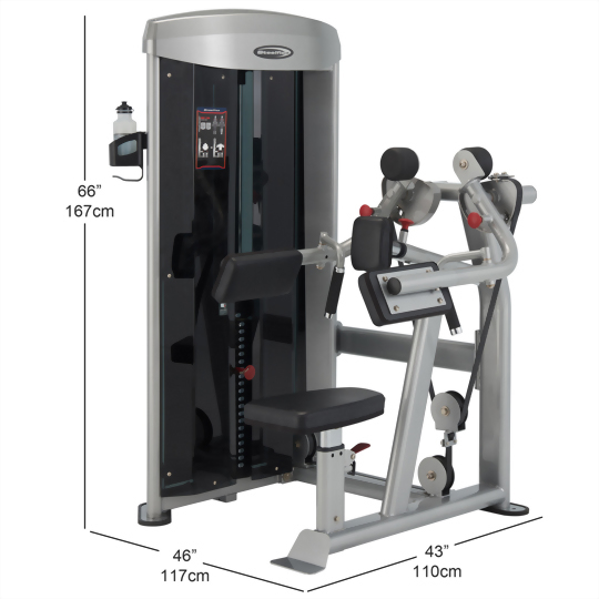 Machine MDR1300 features pop-pin adjustment of lateral arms for fine-tuning shoulder widths into a proper position. The angled handle with an inward-facing orientation design helps the exerciser to align shoulder joints with pivots.